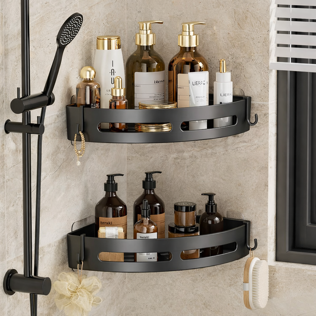 Keeps shampoo, soap, and bathroom essentials neatly organized and within reach.